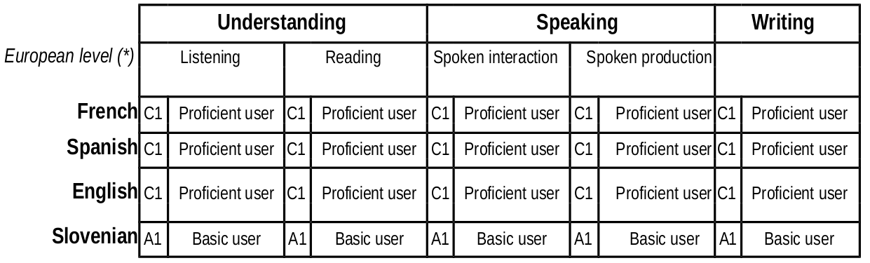 1st level degree (Bachelor) in Translation and Interpreting from the Advanced School of Modern Languages for Interpreters and Translators (SSLMIT of Trieste). Final degree mark: 105/110.