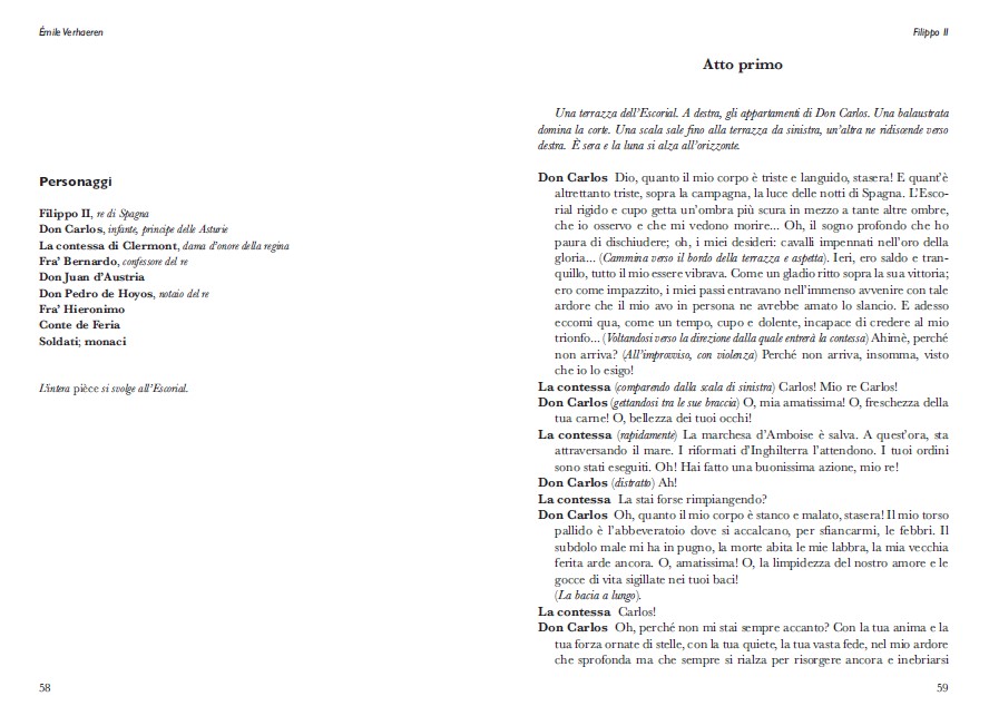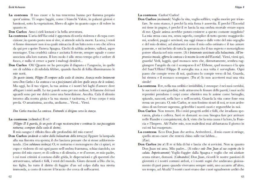 Il presente volume raccoglie per la prima volta i quattro drammi composti dal poeta belga Émile Verhaeren: Il chiostro, Filippo II, Le albe e Elena di Sparta, permettendo un immediato confronto tra le opere e integrando il tutto con articoli di critica e approfondimenti, che analizzano i testi succitati e anche l’opera poetica dell’autore attraverso diversi punti di vista, portando alla luce anche aspetti nuovi del suo stile.